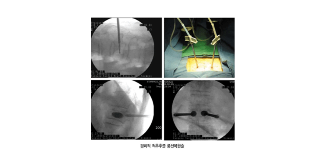 전신마취를 하지 않고 시술이 빠르고 안전하여 가장 널리 쓰이는 방법중의 하나입니다. 대부분의 경우 시술 직후부터 통증이 호전되며, 척추후굴풍선 복원술의 경우 압박 변형된 척추체의 일부를 복원할 수도 있습니다.
